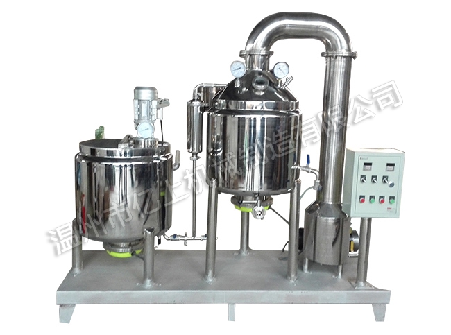 9、根據(jù)經(jīng)驗(yàn),大約40分鐘左右,濃縮完畢,停止加熱,關(guān)閉真空泵抽氣閥,打開(kāi)濃縮罐排空閥,真空度降到常態(tài)后,開(kāi)啟出料閥放料,同時(shí)應(yīng)將回收罐中的水放凈,以備下次工作。
